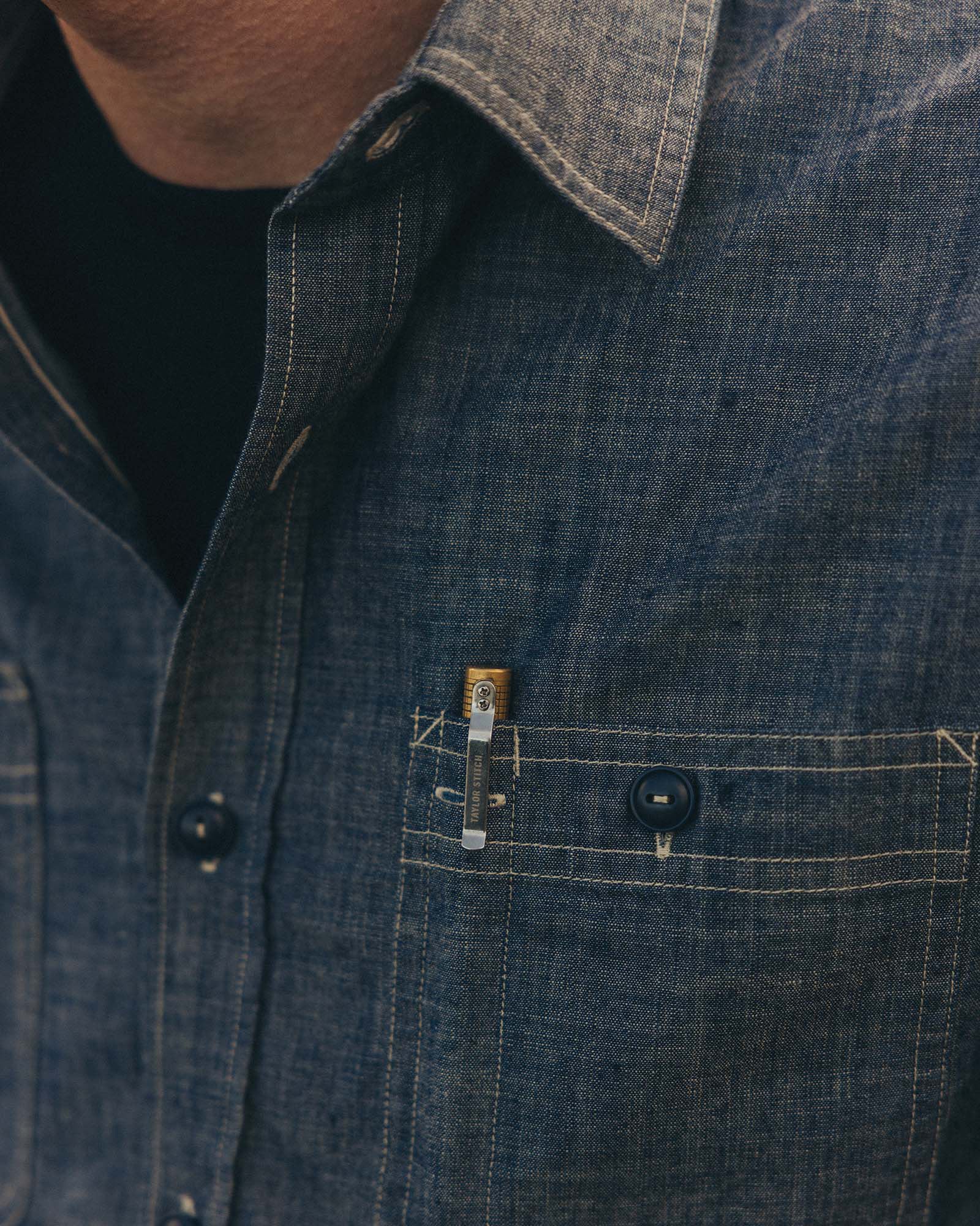 The Foundry Shirt in Rinsed Indigo Chambray from Taylor Stitch