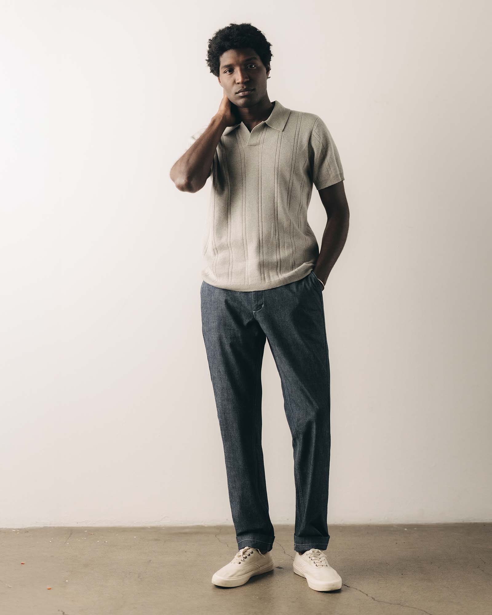 The Valencia Sweater Polo in Heather Grey Rib from Taylor Stitch